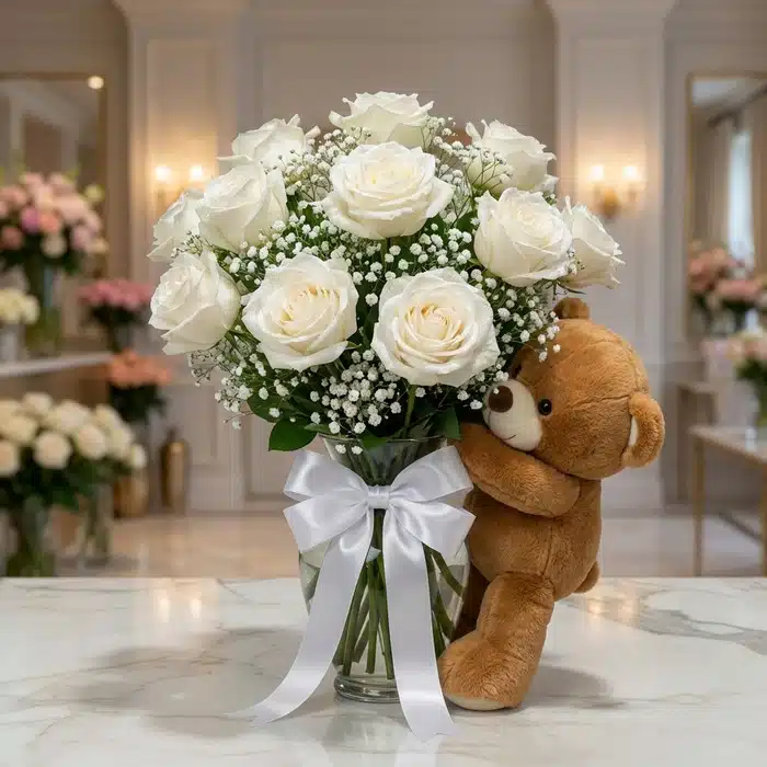 - Regalo Encantador: Incluye flores y un peluche, ideal para cualquier ocasión romántica.